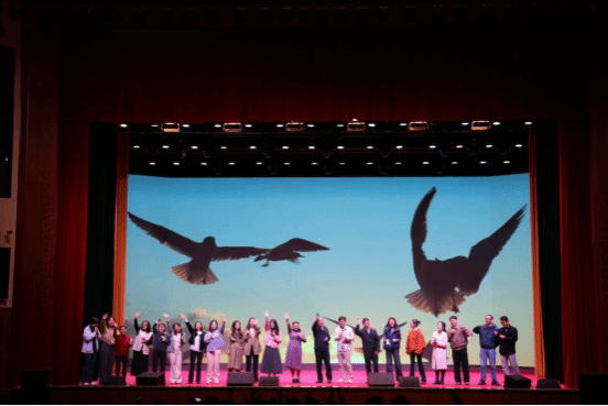 第二篇章再次掀起高潮,表演者们以出色的音乐素养与舞台表现力征服了观众。舞蹈串烧动感十足,用灵动的舞步诠释青春活力;歌曲串烧风格多样,以极具感染力的演唱展现了外院学子的多才多艺。其间,外语学院教师倾情献唱《童年》,熟悉的旋律唤起无数美好回忆,拉近了师生的距离,现场洋溢着温馨与感动;《大家一起喜羊羊》将晚会气氛推向高潮。最后,学院教师以多种语言形式共同演绎经典歌曲《友谊地久天长》,深情寄语新生珍惜同窗情谊,携手共度美好大学时光,为整场晚会画上温馨而难忘的句号。