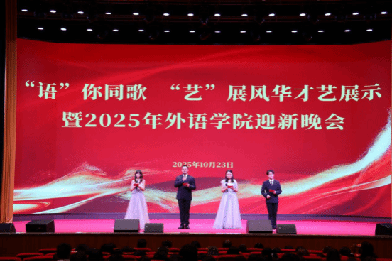 2025年10月23日19:00,外语学院在校友会堂以“‘语’你同歌,‘艺’展风华”为主题隆重举办学生风华才艺展示暨2025级迎新晚会。学院领导及师生参加晚会。