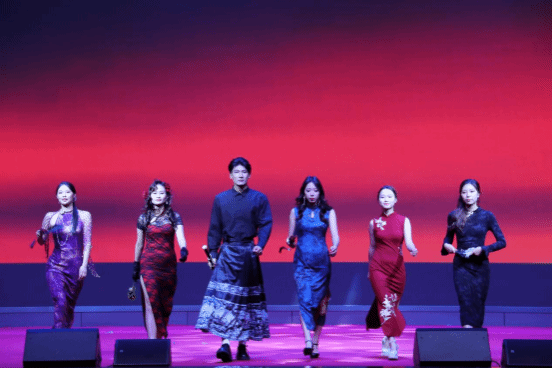 晚会以丰富多样的艺术形式为观众呈现了一场精彩纷呈的视听盛宴。在第一篇章中,乐队表演《我是如此相信》率先点燃全场,激昂的旋律传递出青春的澎湃力量。随后,各类节目轮番上演,同学们通过歌曲、舞蹈、走秀等形式淋漓尽致地展现了青春风采与艺术才华;融合时尚元素与传统文化的走秀节目《旗韵新风》,以其独特魅力为第一篇章画上圆满句号。