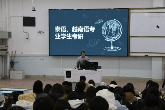 英语系主任马娜老师、东南亚语系主任朱贵平老师分别围绕英语、翻译、越南语、泰语等专业,从备考规划、择校策略、时间统筹、应试技巧及心态调适等方面开展系统全面的备考指导。学院学生中心何芳老师从心理学角度进行了有针对性的考研规划指导。