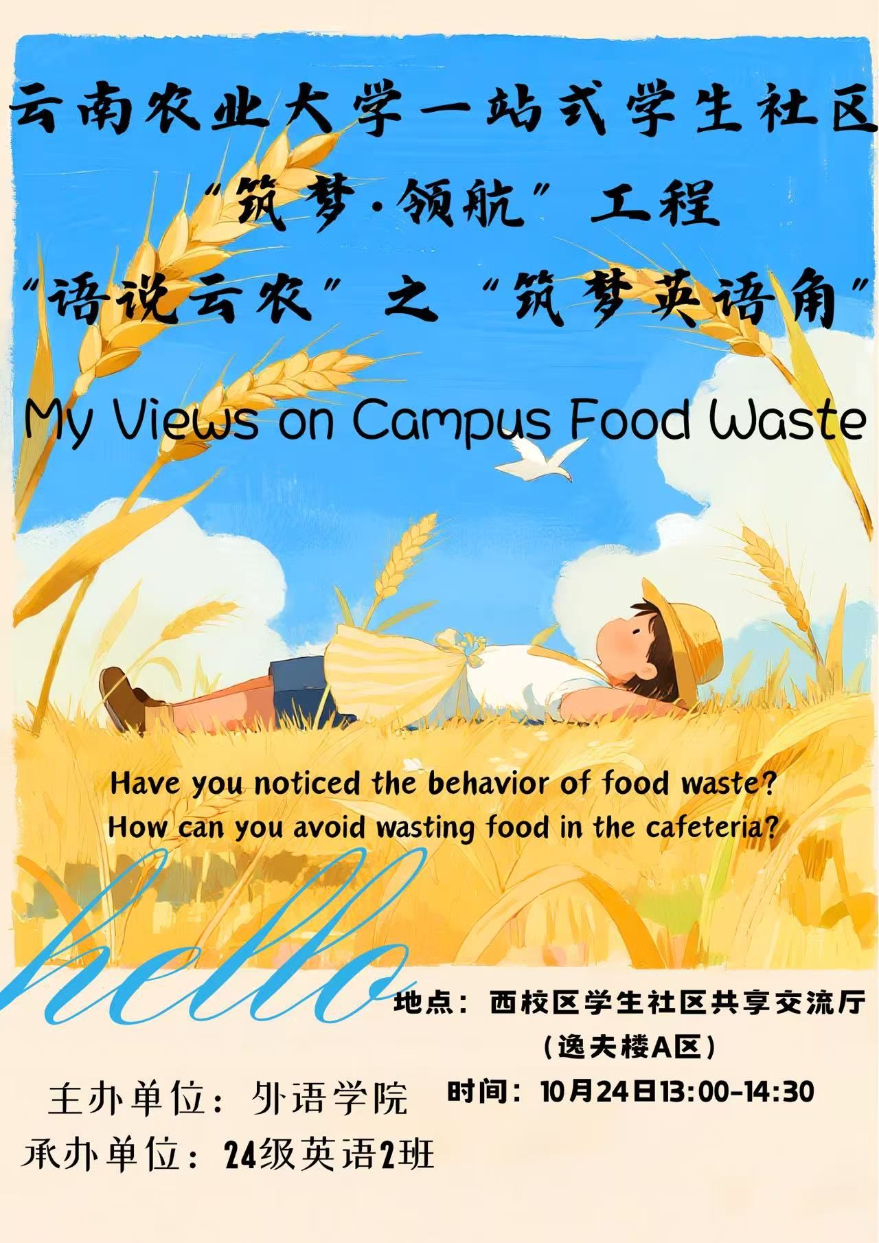 "筑梦英语角”2025年秋季学期第六期—My Views on Campus Food Waste(我对校园浪费粮食的看法)